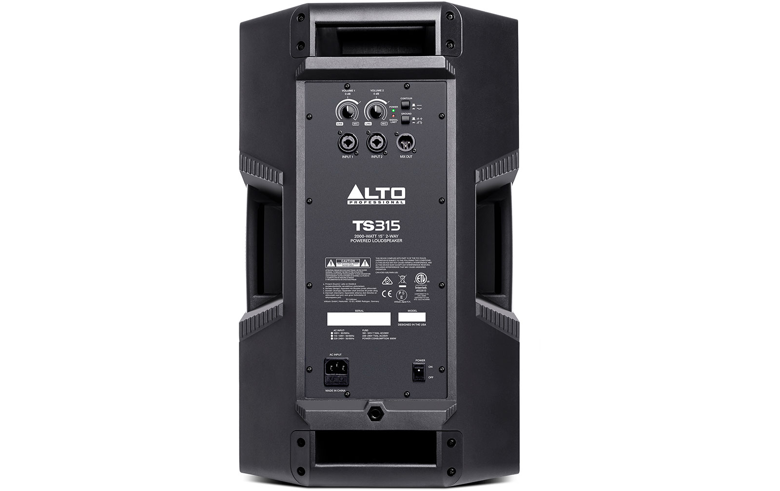 Alto TS315 – 2-полосная активная акустическая система с 15-дюймовым драйвером и 1,4-дюймовым твитером, усилителем класса D мощностью до 2000 Вт и частотным диапазоном 50 Гц - 20 кГц.