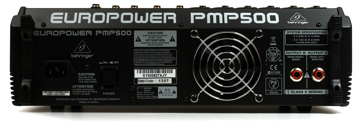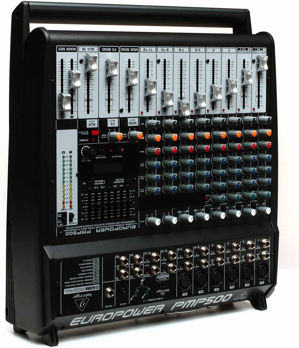 Behringer PMP500 – аналоговый активный микшерный пульт (со встроенным усилителем) на 12 каналов, мощностью 500 Вт со встроенным процессором эффектов, 7-полосным графическим эквалайзером и функцией обнаружения обратной связи.