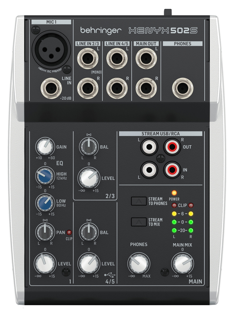 Ультракомпактный на 5 входов микшер XENYX 502S для стриминга, подкастинга и записи позволяет с легкостью достичь премиального качества звука. XENYX 502S обеспечивает теплый и ультра-музыкальный саунд, благодаря отмеченному наградам микрофонному предусилителю Xenyx.