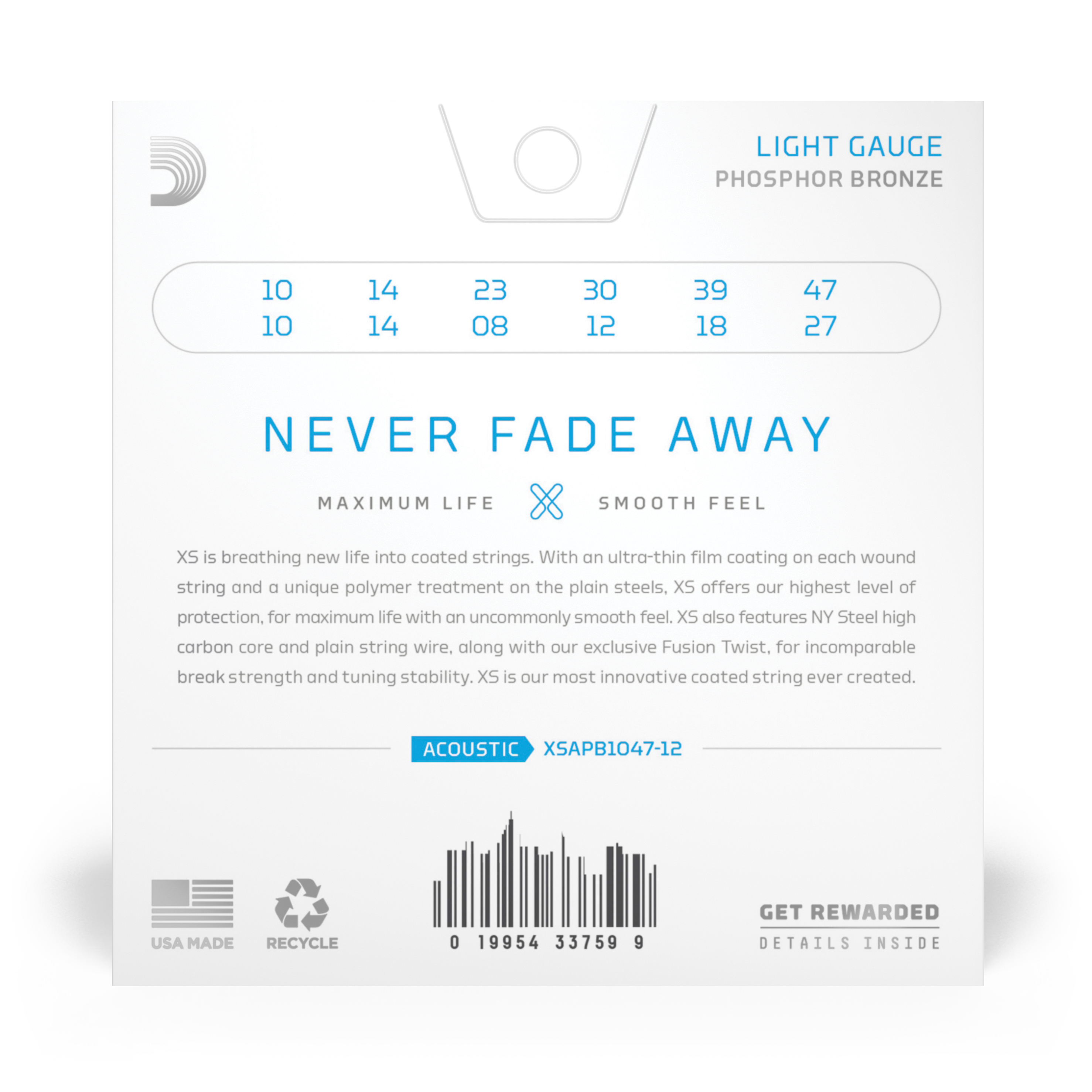 D'addario XSAPB1047-12 XS Комплект струн для 12-струнной акустической гитары, фосфорная бронза, 10-47