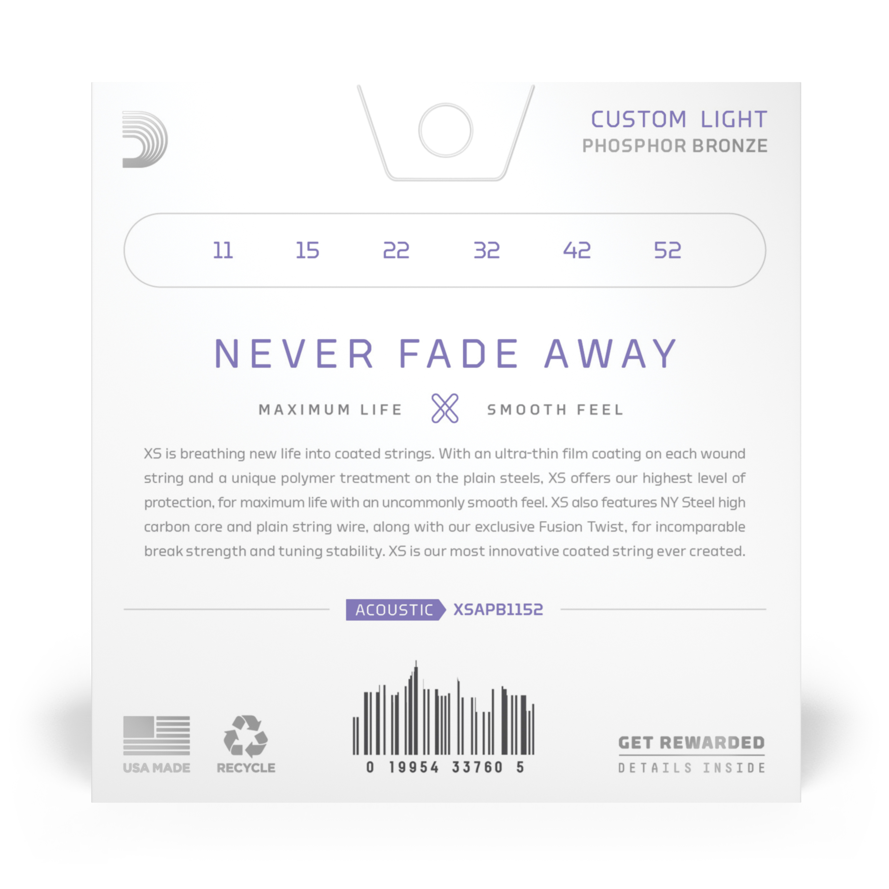 D'addario XSAPB1047 Set Acoustic Guitar XS Phosphor Bronze, 11-52, Custom Light струны для акустической гитары фосфорная бронза