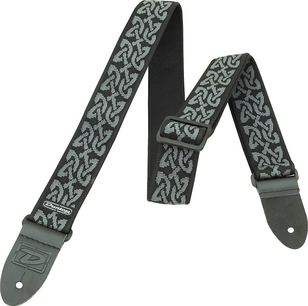 D38-14GY Celtic Grey - гитарный ремень из серии D38 от американской компании Dunlop. Ремни этой серии отличаются простотой регулировки пряжек, кожаными наконечниками, мягкими краями, большой длиной и вариантами дизайна с использованием жаккардовой ткани и поли-сплетенной ткани. Ремень выполнен в черном цвете с серым узором.