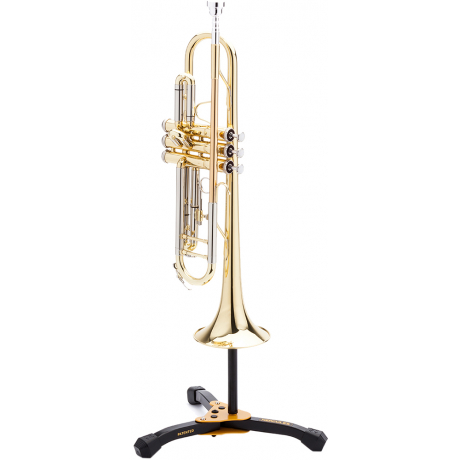 Эта высококачественная стойка отличается сроком службы, стабильностью и прочностью, недостижимыми для многих аналогов, благодаря чему подойдет даже для профессиональных исполнителей. DS510BB хорошо сочетается как с музыкальными трубами, так и с корнетами. Важно отметить, что держатель инструмента можно отсоединить от основания, благодаря чему хранение и транспортировка стойки значительно упрощается. Само треножное основание очень устойчиво, имеет складную конструкцию и прорезиненные наконечники, предотвращающие скольжение практически на любой поверхности. Высота держателя без труда корректируется под различные размеры инструмента.