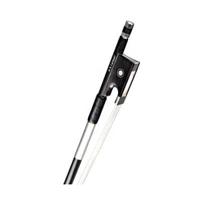 Трость смычка изготовлена из карбона, круглая. Колодка смычка из черного африканского дерева с монтажными деталями из мельхиора, украшена Парижским глазком. Бочонок из 3 частей.