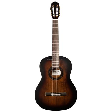 Классическая гитара LA MANCHA Granito 32 имеет размер 4/4, матовую отделку топа с открытыми порами и струны Savarez. Верхняя дека этого инструмента выполнена из ели, нижняя дека и обечайки – красное дерево. Длина мензуры 65 см, сам гриф выполнен из махагона и дополнен накладкой из овангкола, древесины родом из Африки, которая по своим характеристикам похожа на более популярную бубинга. Данная модель гитары представлена в трёх вариантах цвета (натуральный, состаренный коричневый, тёмный санбёрст) и имеет чёрную окантовку из АБС пластика.