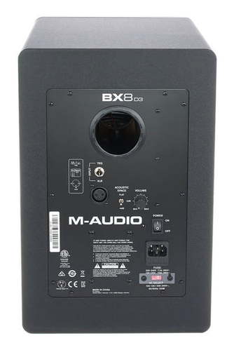 M-Audio BX8 D3 – 2-полосный активный студийный монитор ближнего поля, имеющий 8 дюймовый вуфер из кевлара и 1,25 дюймовый твитер с куполом из шелка, суммарную мощность 150 Вт (НЧ 80 Вт, ВЧ 70 Вт) и частотный диапазон 37 Гц – 22 кГц.