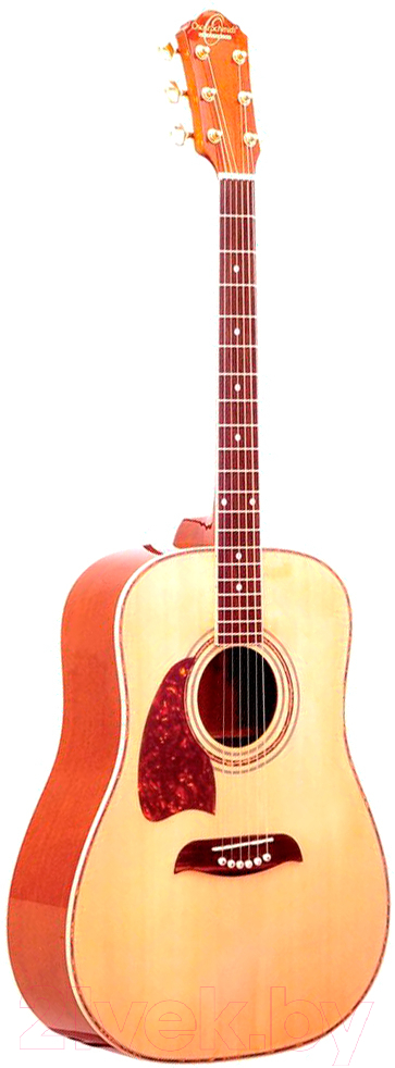 Oscar Schmidt OG2LHN, леворукая гитара (гитара для левши), тип - дредноут, верхняя дека - отборная ель, обечайка и нижняя дека - Catalpa, гриф - махагони, подставка и накладка на гриф - палисандр, регулируемый анкер, хромированные колки, цвет натуральный.