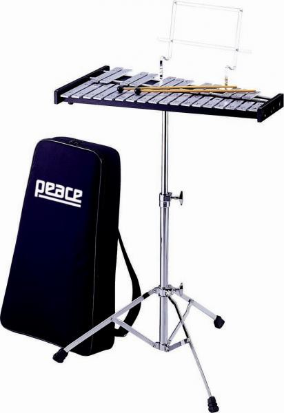 В комплект входят футляр, стойка, подставка для нот, колотушки и тренировочный пэд. Сам металлофон имеет диапазон в 2.5 октавы (30 нот) и отлично подходит для обучения.