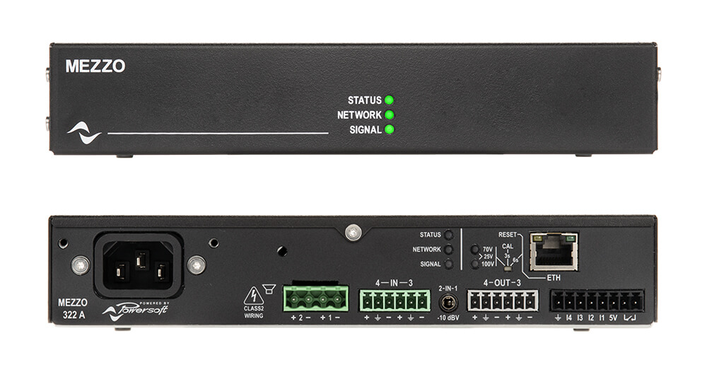 Powersoft Mezzo 322 A - 2-канальный трансляционный усилитель мощности с DSP и возможностью работы с ПО Armonia. Это компактная инсталляционная модель линейки Mezzo, которая отличается такой же высокой надежностью, качеством сборки и акустическими характеристиками, как усилители Powersoft других серий, но выполнена в корпусе в два раза меньше – в формате 1/2 рэка. Очень гибкие в управлении и настройке, версии Mezzo с индексом А поддерживают дистанционный мониторинг и контроль всех важных функций.