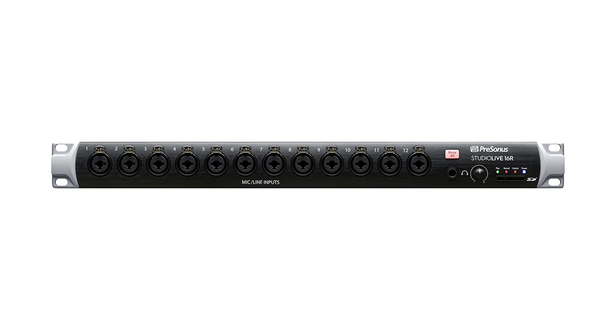 PreSonus StudioLive 16R – 16-канальный рэковый цифровой микшерный пульт/стейдж-бокс на 18 входов с 16 микрофонными предусилителями, встроенным 18 x 18 USB-интерфейсом, 32 x 32 AVB-интерфейсом, , рекордером на SD-карту, софтом Studio One в комплекте и встроенным цифровым процессором эффектов.