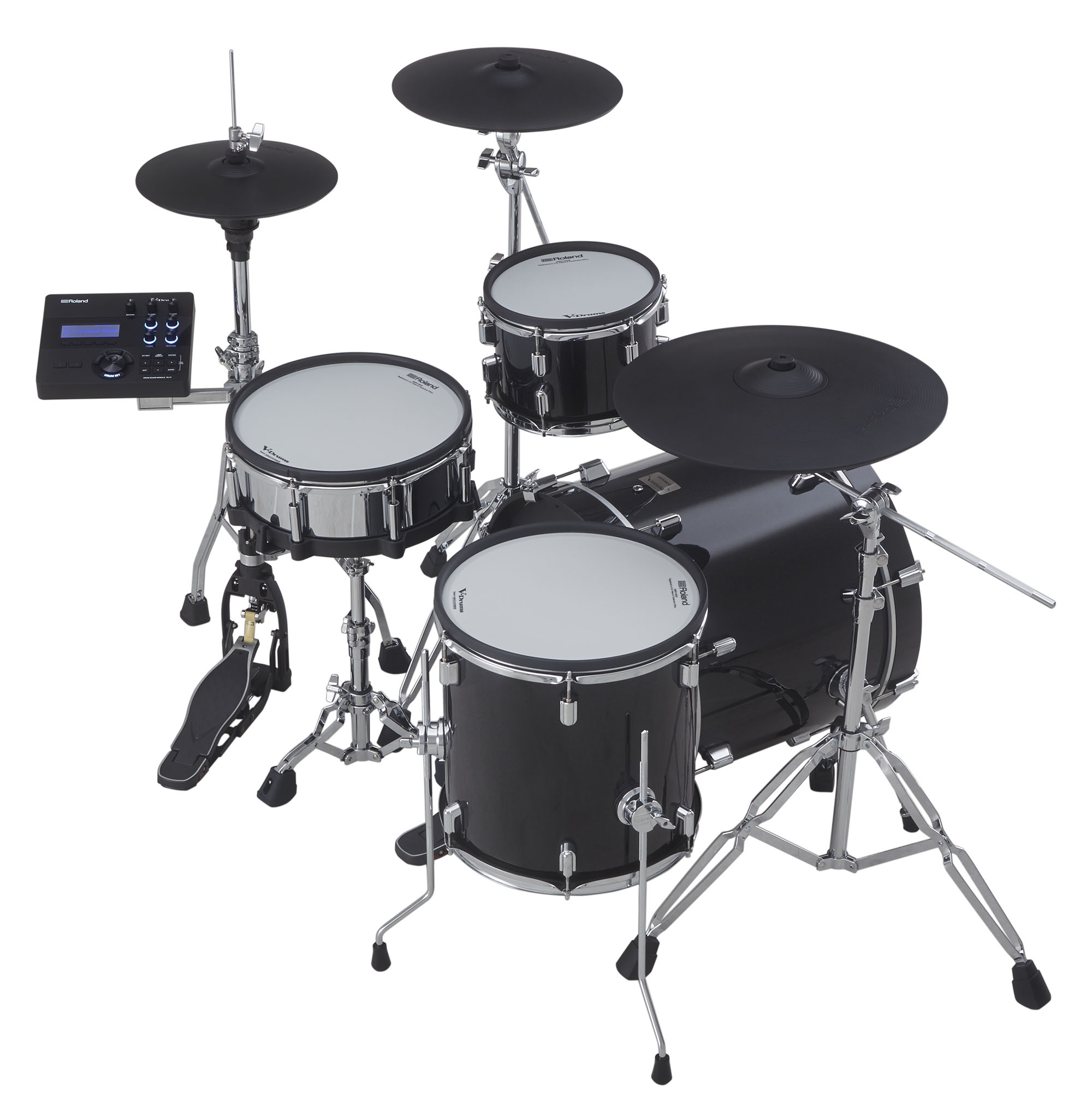 Значительный вклад в естественность ощущений, получаемых при игре, вносит легендарная многослойная сетчатая мембрана компании Roland, предусматривающая регулировку натяжения. Она позволяет настраивать отскок, наиболее подходящий под манеру вашей игры. А когда колотушка бьет по специально разработанному бас-барабану, по его корпусу перемещается воздушный поток, создавая давление и сопротивление, которые возникают при игре на акустическом бас-барабане.