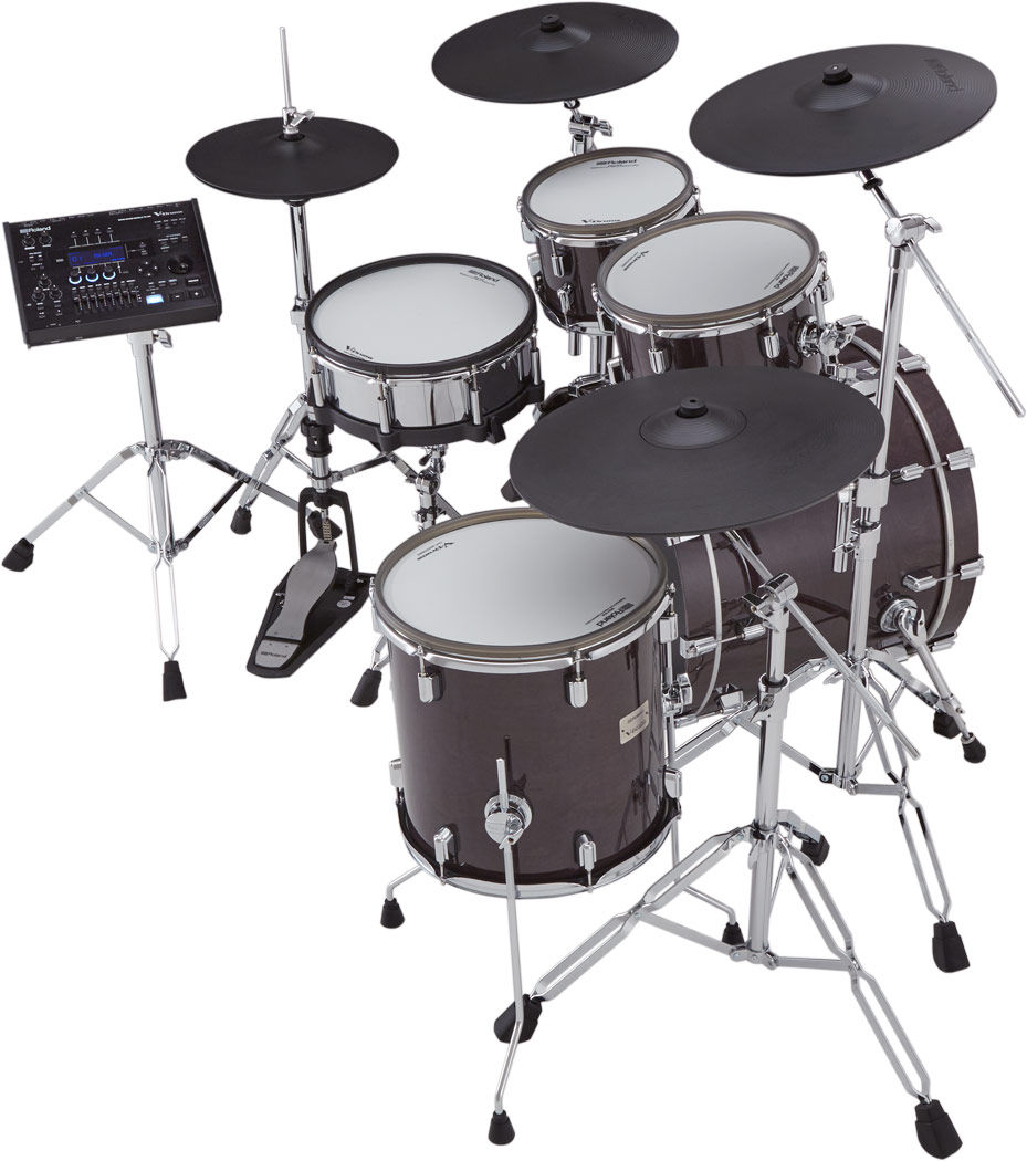 - Набор ударных линейки V-Drums Acoustic Design из пяти компонентов с полноразмерными деревянными корпусами и хромированной стойкой с двухпрофильными опорами