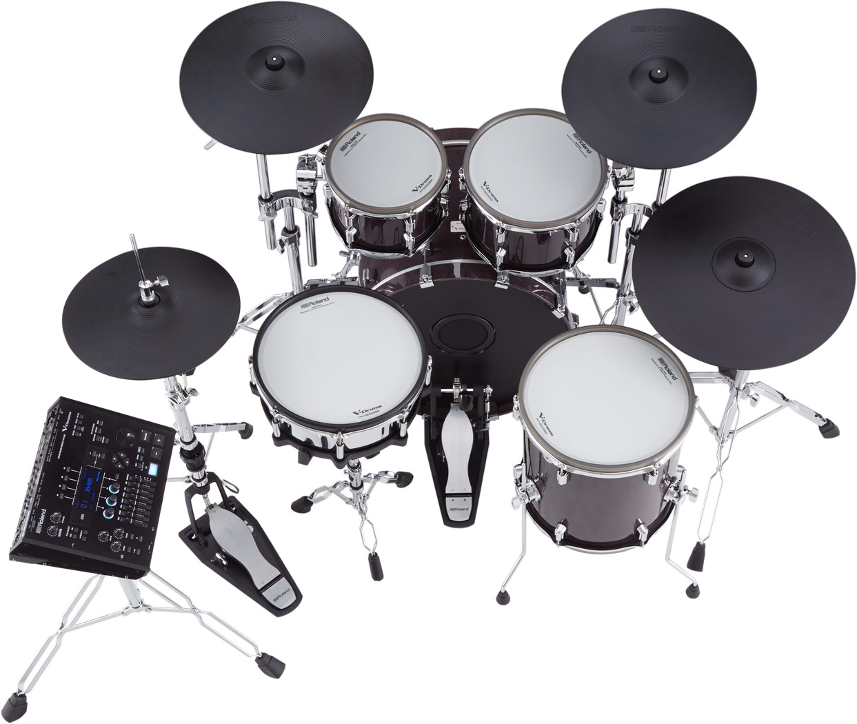 Установку ударных VAD706 можно доукомплектовать дополнительными пэдами с помощью четырех вспомогательных триггерных аналоговых входов звукового модуля TD-50Х. Выбирайте сами, добавить пэды тарелок, напольного тома или компактный триггер, например Roland BT-1. Или же можно поставить второй бас-барабан, чтобы окончательно "добить" аудиторию.